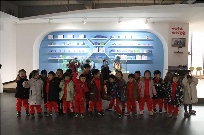 孩子們進入文化館起源故事廳后對館內(nèi)擺放的生產(chǎn)工具充滿了好奇,仔細聆聽講解員講述產(chǎn)品的生產(chǎn)情況。講解到眼貼部分時,小朋友們將眼貼的小尾翼形狀比喻成各種小動物,天馬行空的想象力為眼貼賦予了新的生命。