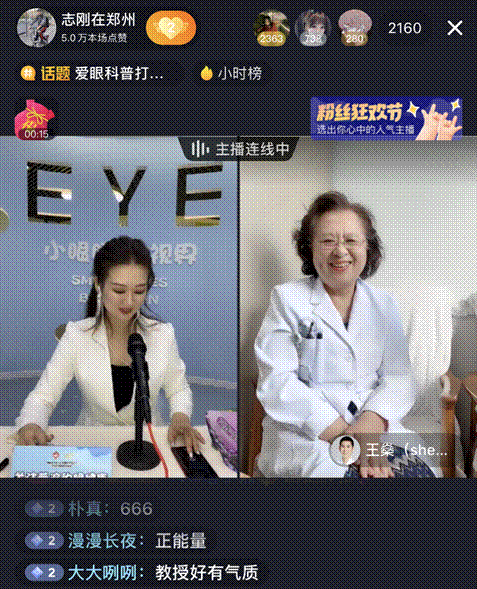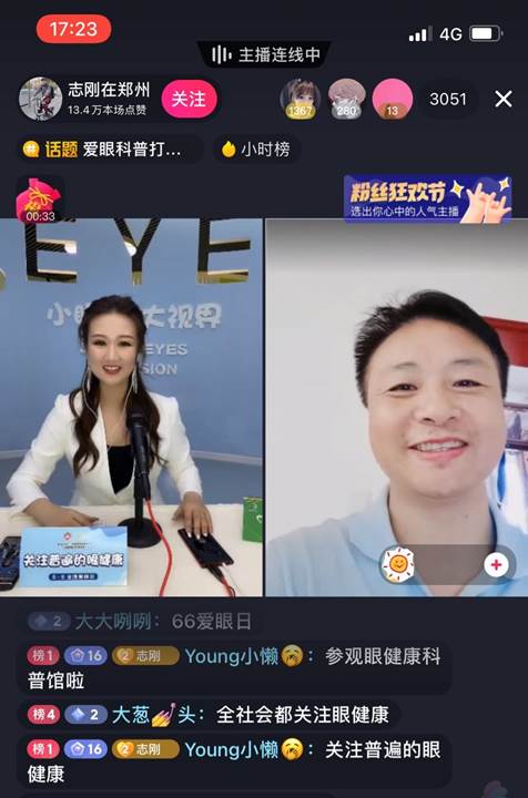 直播間特別邀請(qǐng)到河南豫劇院院長(zhǎng)李樹建、鄭州市科協(xié)主席吳予紅、鄭州高新區(qū)管委會(huì)創(chuàng)新協(xié)同中心主任焦守剛、中國廣場(chǎng)舞推廣大使美久、溫州醫(yī)科大學(xué)眼健康科普館館長(zhǎng)張秋霞、好視力愛眼專項(xiàng)基金秘書長(zhǎng)楊靜出席愛眼日啟動(dòng)儀式,現(xiàn)場(chǎng)倡導(dǎo)愛眼護(hù)眼,關(guān)注普遍的眼健康。
