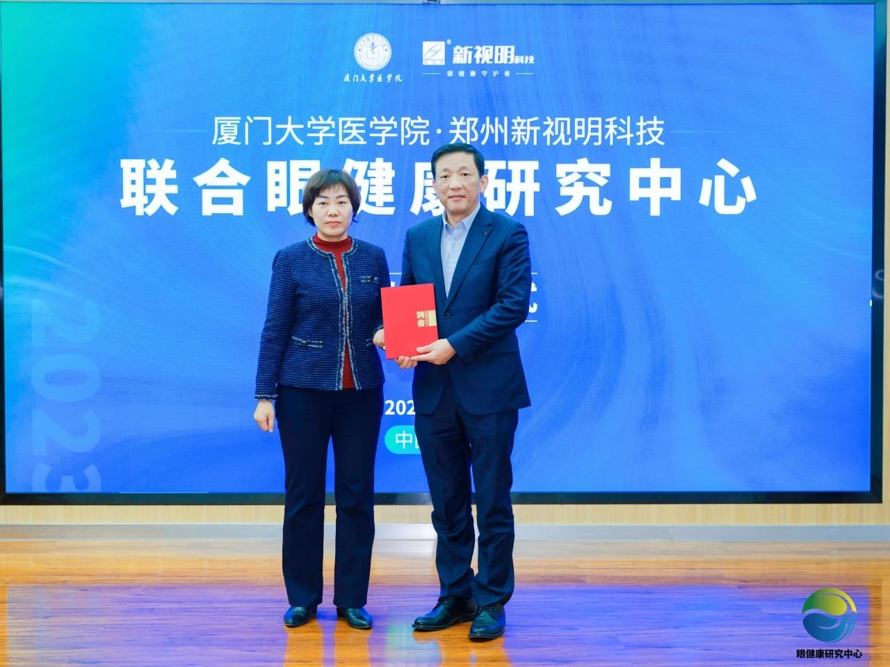 隨后,劉祖國(guó)教授向鄭州市新視明科技總經(jīng)理張秋霞頒發(fā)聘書(shū),張秋霞出任廈門(mén)大學(xué)醫(yī)學(xué)院與鄭州新視明科技聯(lián)合眼健康研究中心副主任。