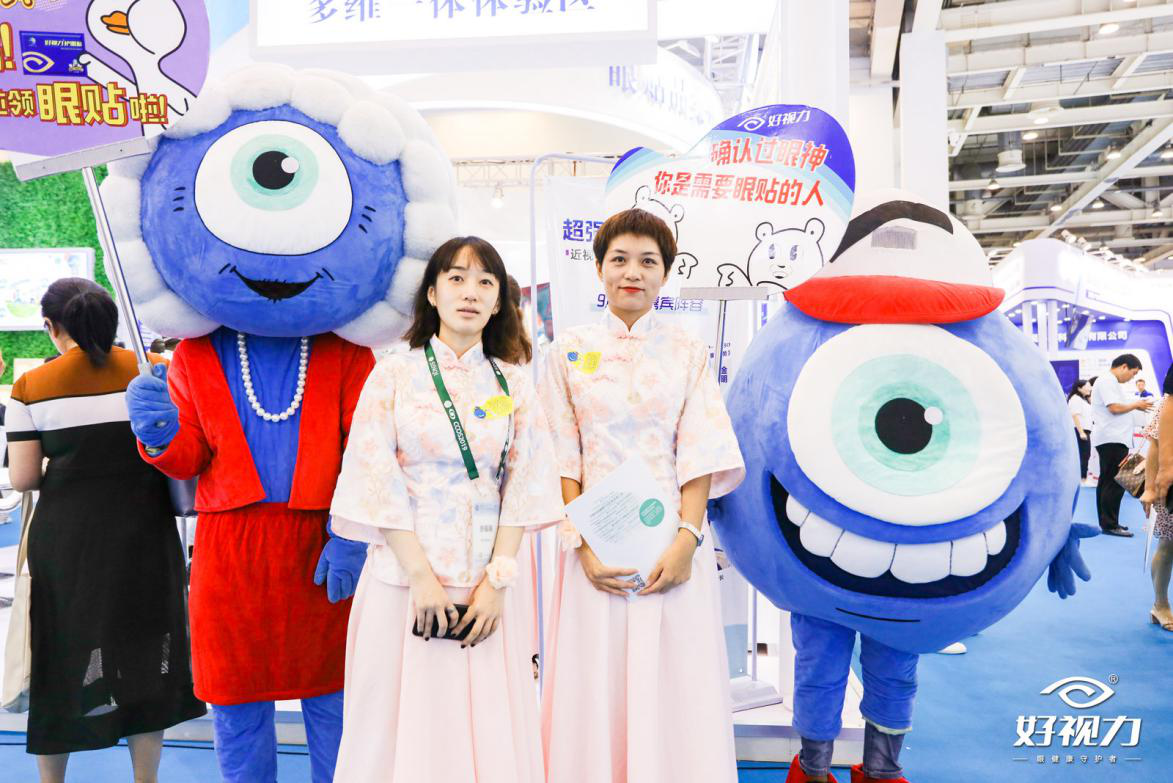 C:沒錯!好視力家族形象物再聚首,我們和藹可親的爺爺和奶奶,可愛的弟弟,還有姐姐和爸爸媽媽全家齊上陣,成為大會上一道靚麗的風(fēng)景線。眾人紛紛駐足高呼“amazing!”拉著拍照合影更是不在話下,人多的連小春都快認(rèn)不清誰是姐姐誰是媽媽了。
